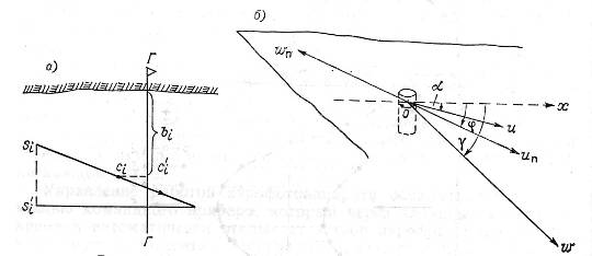 γ - угол, составленный вектором ω и направлением движения поплавка ох (рис. 6 б).