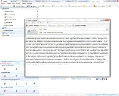 Первым этапом можно считать инициирование проекта исходящего документа, который осуществляется путем выдачи задания руководителем подразделения или вызвано необходимостью в ответе на полученный документ самим адресатом. Система поддерживает функцию параллельной работы группы сотрудников над проектом документа.