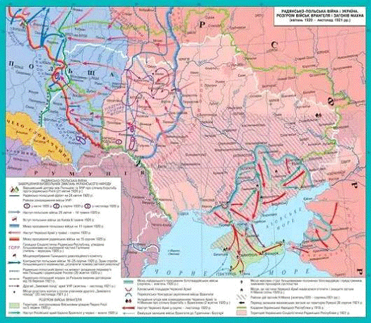 Советско-польская война завершилась в июле 1920 г. мирным договором, который проходил сначала под Минском, а затем переговоры были перенесены в Ригу. Но, затягивая мирные переговоры, обе стороны пытались использовать их, чтобы получить как можно больше выгоды из тайной подготовки к новому удару. Однако оказалось, что польские войска, что дальше, то больше теряют боеспособность. Красная армия не могла больше воевать, несмотря на внутренние проблемы армии, провал коммунистического курса на «мировую революцию». Делегация Советской России и Советской Украины вынуждены были дать согласие на установление границы, при котором Западная Украина и Западная Белоруссия оставались в пределах Польши. На этих условиях было подписано перемирие 18 марта 1921 года в Риге. Делегация УНР к переговорам не была допущена.