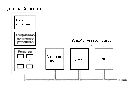 На рис. 1 показана структура обычного компьютера с шинной организацией.