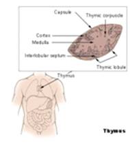 Ти́мус (ви́лочковая железа) - орган лимфопоэза человека и многих видов животных, в котором происходит созревание, дифференцировка и иммунологическое "обучение" T-клеток иммунной системы