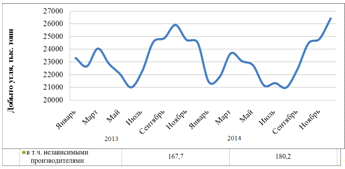 В 2013-2014 гг. в Российской Федерации было добыто более 557 млн. тонн