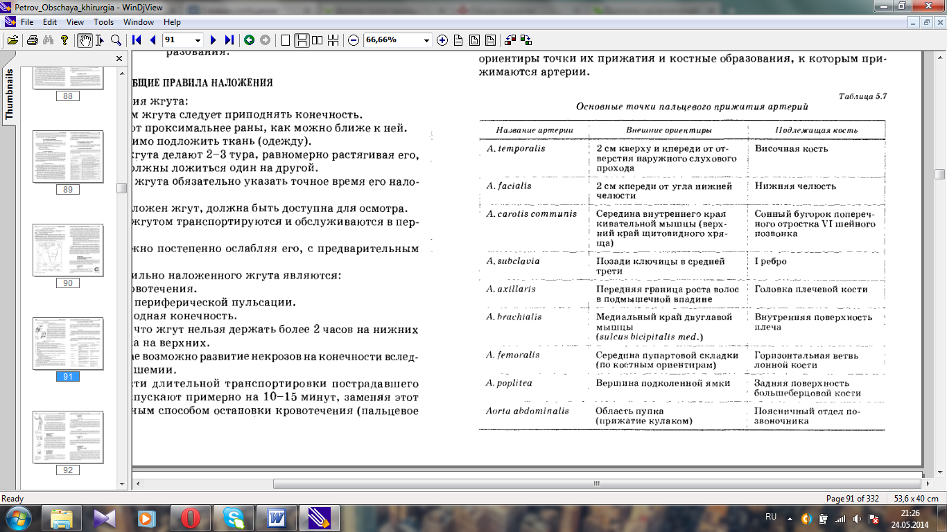 1) Наложение жгута. При арт кровотечении или массивном на конечности. 2 часа – на нижних и 1,5 часа на верхних, потом – перерыв 15 минут.