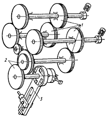 первый горизонтальный распределительный вал; О - механизма отрезки;