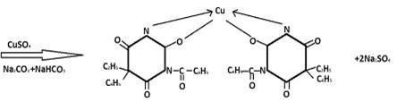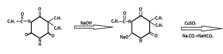 . К 0,2 г препарата прибавляют 10 капель 1% раствора едкого натра, 0,2 мл