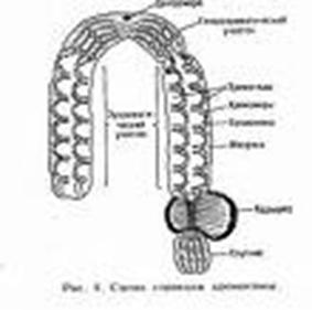 противоположном полюсе ядра располагаются (тоже фиксированные на мембране)