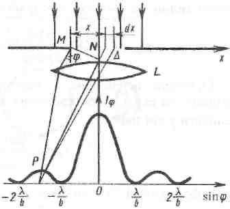 Дифракція Фраунгофера – дифракція світла, що спостерігається на таких відстанях, для яких кутові розміри оптичних неоднорідностей набагато менші ніж відношення довжини світлової хвилі до лінійних розмірів цих неоднорідностей (дифракція в паралельних променях).