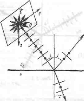 При падінні світлового пучка 1 на діелектричну пластинку П1 під кутом і частина його відбивається і потрапляє на аналогічну пластинку П2, поставлену так, щоб кут падіння на неї дорівнював куту падіння і на першу пластинку. Не змінюючи кута падіння на першу пластинку, повертають другу пластинку навколо осі, що збігається з променем 2. При такому повороті пластинки П2 кут падіння не змінюється, а змінюється тільки взаємне положення площин падіння променів світла між пластинками П1 і П2.