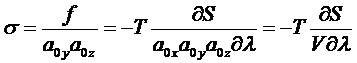 На что идет такая работа, если растяжение происходит при постоянной температуре T? Очевидно, что в данном случае, работа идет на изменение энтропии цепочки (здесь проявляется аналогия со сжатием идеального газа).