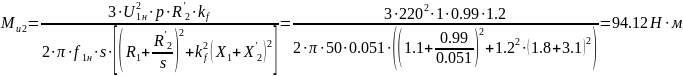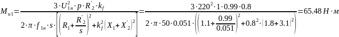 То есть kU=kf =0,8 для f1=40 Гц и kU=kf =1,2 для f1=60 Гц. На основании равенства kU=kf выражение для электромагнитного момента асинхронного двигателя принимает следующий вид:
