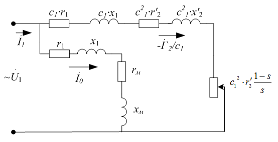 Изображение Г-образной схемы замещения асинхронного двигателя: