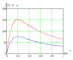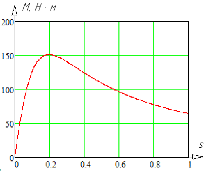 Рисунок 2 – Зависимость электромагнитного момента от скольжения