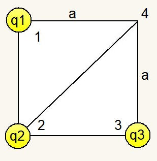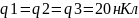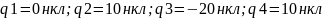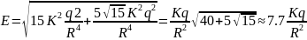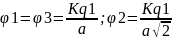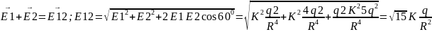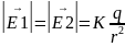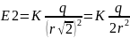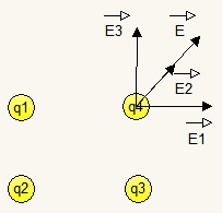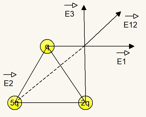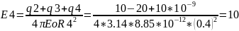 Q1 и q3 в четвертой точке создают направленную напряжённость под углом в 900 друг к другу: