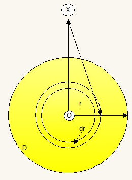 Разобьем диск на малые кольца радиусом r и шириной dr.