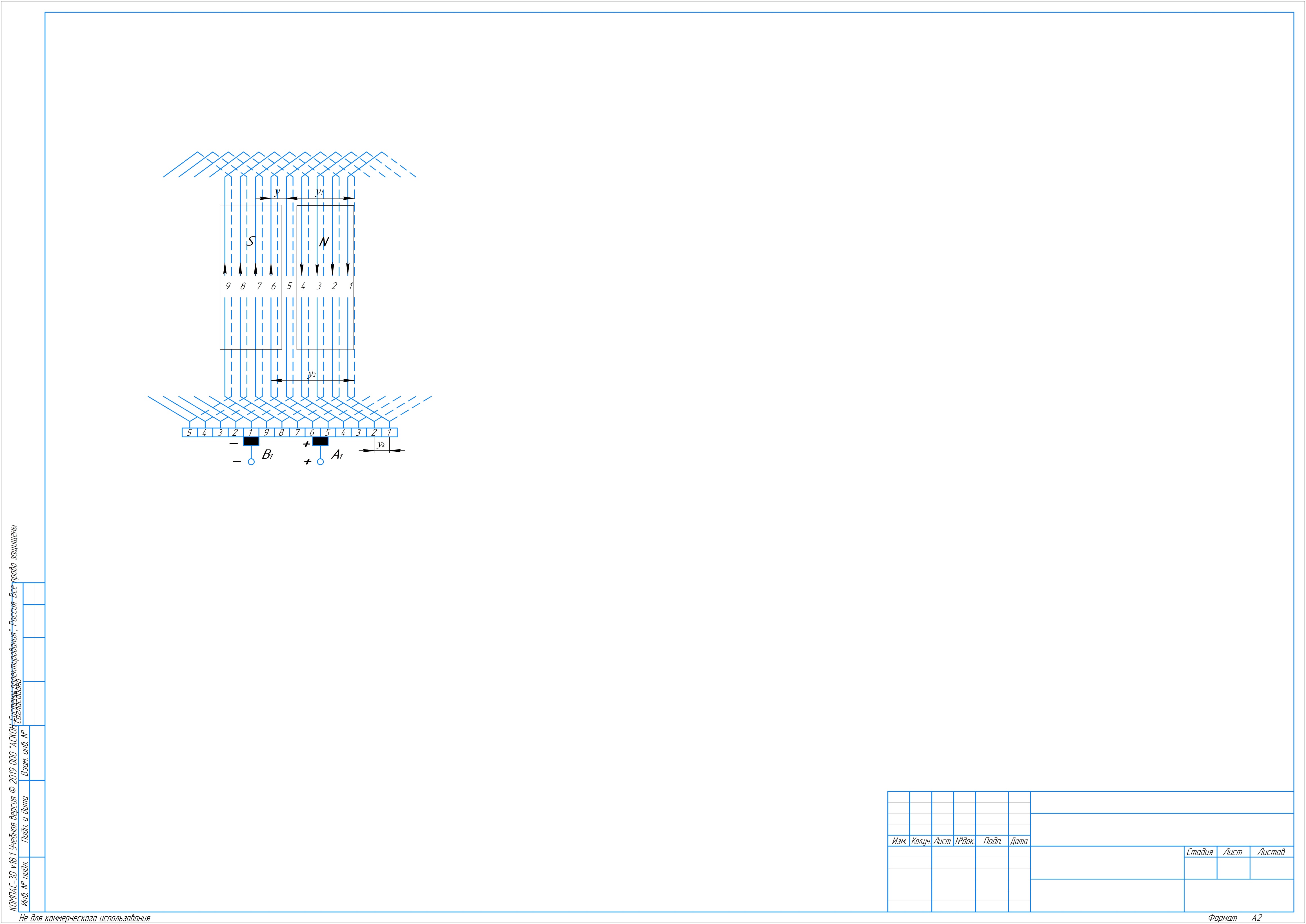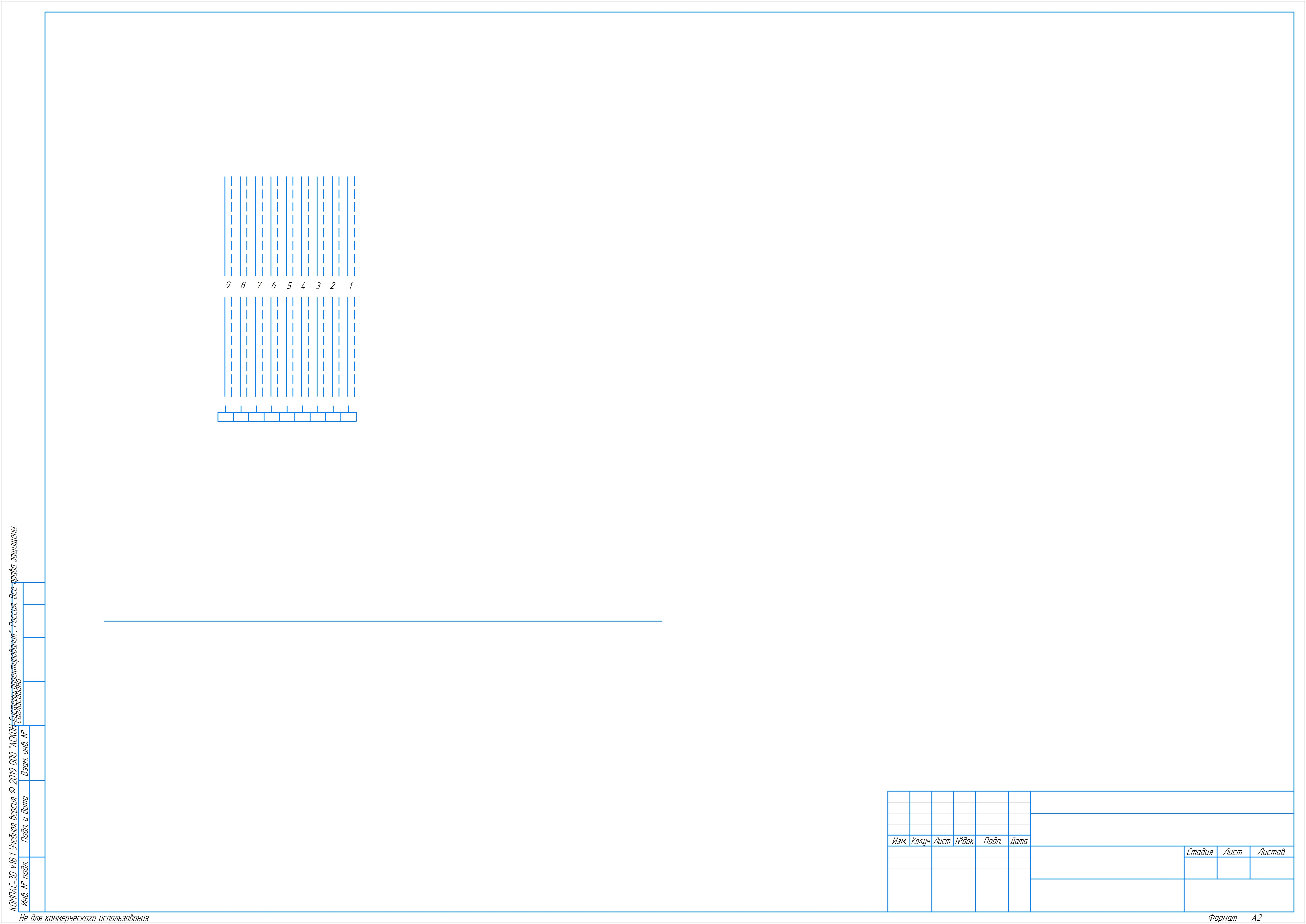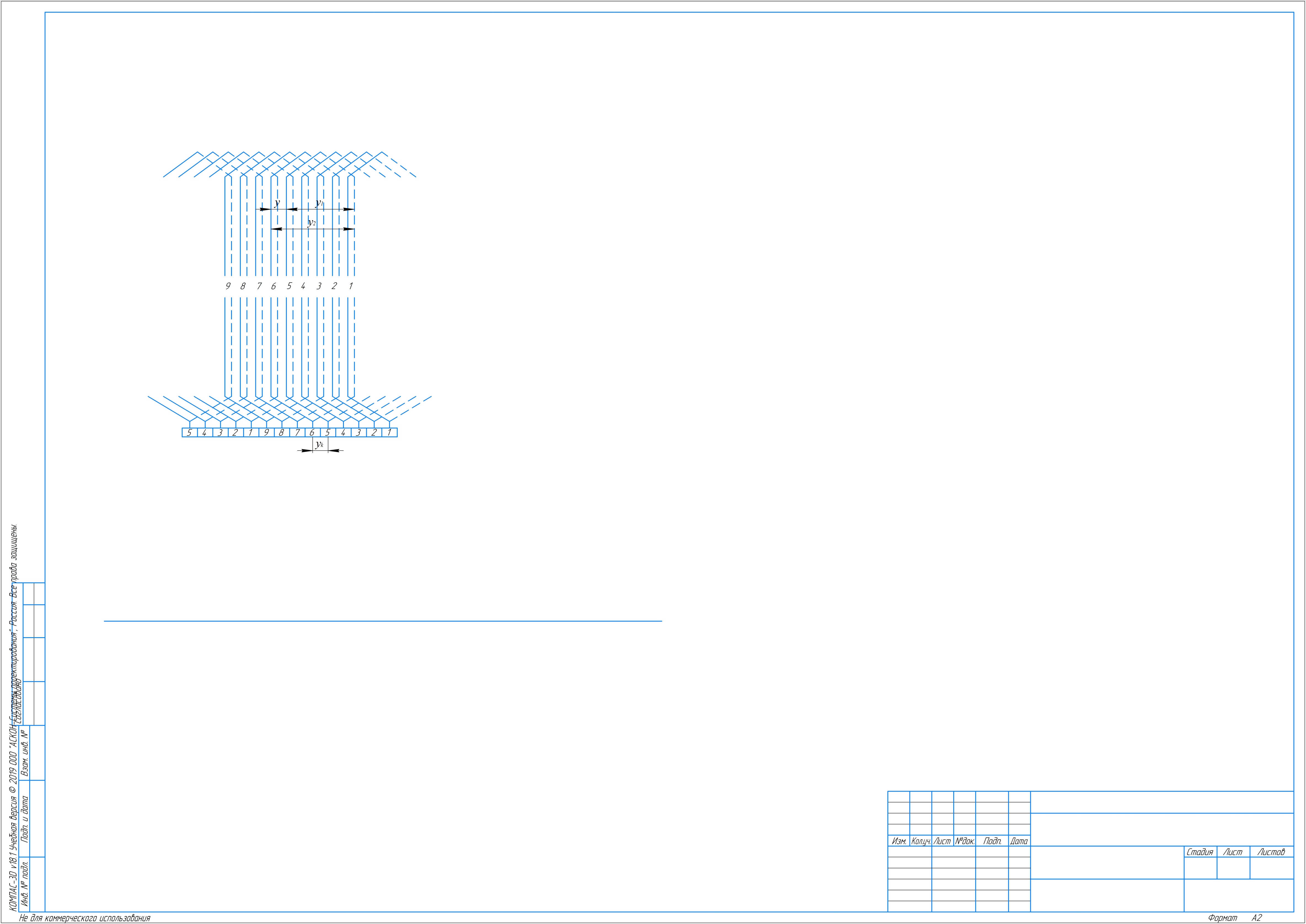 Чертим Z = 9 пар параллельных вертикальных линий одинаковой длины, расположенных на одинаковом расстоянии. Каждая пара линий представляет собой сплошную и штриховую линии, изображающие соответственно активные стороны секций, расположенных в верхнем и нижнем слоях паза. Нумеруем пазы по порядку справа налево.