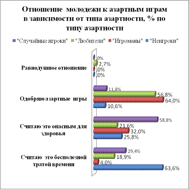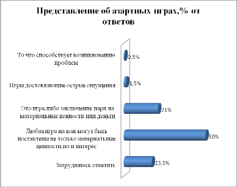 ) 40 % молодежи города Саратова неверно трактуют понятие "азартные игры", определяя их как игры, любого вида, на кон которых могут быть поставлены не только материальные ценности, но и интерес.