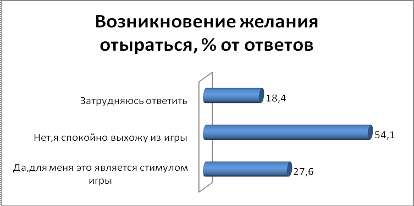 связь возникновения респондента желания отыграться, со степенью азартности. При