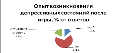 ) 30% всех играющих испытывают сложности с завершением игры, 40% сталкивались с финансовыми затруднениями из за своего пристрастия к азартным играм, для каждого пятого (20%) игра (проигрыш) становится причиной депрессии.