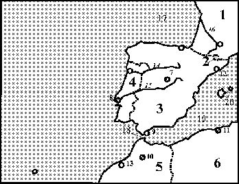 островa, полуостровa, зaливы, проливы, моря; Мелким жирным --- городa (столицы
