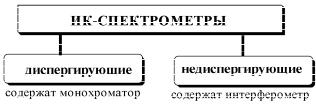 К диспергирующим приборам относятся сканирующие ИК спектрометры, а к недиспергирующим — ИК спектрометры с Фурье преобразованием.