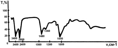 Решение. В ИК спектре наблюдается интенсивная полоса поглощения при 3400 см-1, которая может быть обусловлена валентными колебаниями ν(OH) или ν(NH). Так как в приведенной брутто-формуле не содержится атомов азота, то следует отнести эту полосу к ν(OH). Такое отнесение подтверждается также наличием полос, характерных для алифатических спиртов, — интенсивной полосы валентных колебаний ν(С–O) при 1050 см-1 и полосы деформационных колебаний δ(ОН) при 1360 см-1. Понижение частоты ν(OH) до 3400 см-1 свидетельствует о том, что гидроксильная группа участвует в образовании межмолекулярной водородной связи.