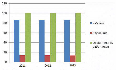 работники, остальные 49 - рабочие. В 2013 году численность рабочих в общей