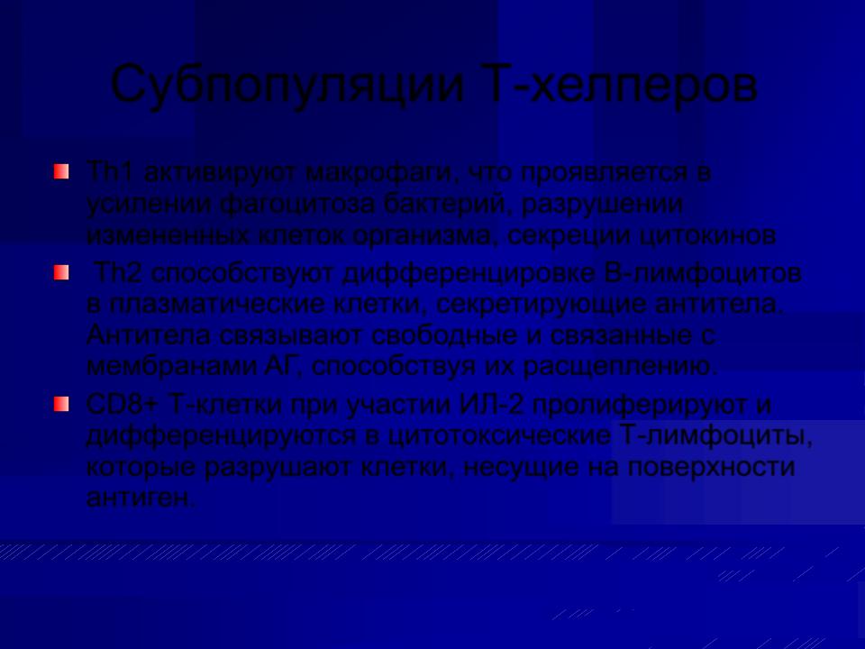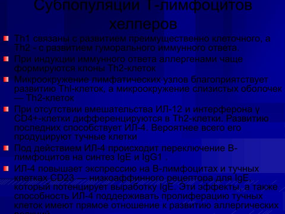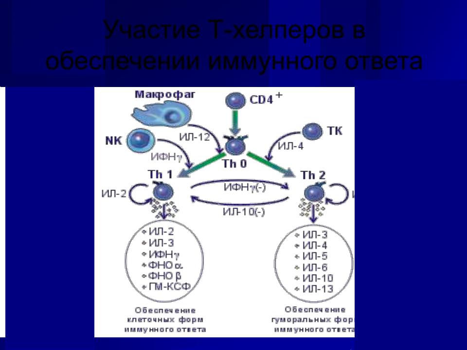 Тh1 связаны с развитием преимущественно клеточного, а Th2 - с развитием гуморального иммунного ответа.