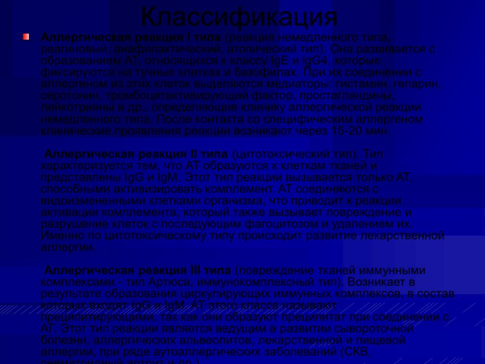преципитирующими, так как они образуют преципитат при соединении с АГ. Этот тип реакции является ведущим в развитии сывороточной болезни, аллергических альвеолитов, лекарственной и пищевой аллергии, при ряде аутоаллергических заболеваний (СКВ,