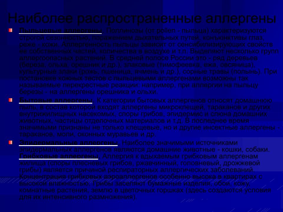 Наиболее распространенные аллергены