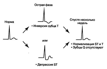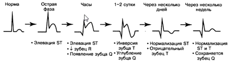 Рис. 2. Эволюция изменений ЭКГ при остром инфаркте миокарда с Q-зубцом