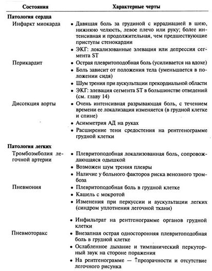 Диагноз острого инфаркта миокарда основывается на: 1) клинической картине и данных анамнеза, 2) типичных изменениях ЭКГ и 3) определении кардиоспецифичных макромолекул в сыворотке крови. В таблице 2 перечислены другие причины острой боли в грудной клетке, похожие на боли при инфаркте миокарда.