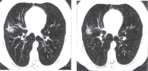 заполнен плотными казеозными массами. На томограмме бронхолобулярный инфильтрат