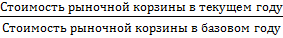 Для того чтобы рассчитать индекс цен, необходимо знать стоимость рыночной корзины в данном (текущем) году и ее же стоимость в базовом году (году, принятом за точку отсчета).