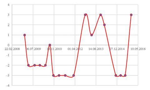 проведения политики по большей части получили оценку -2 и -3 по модернизированной