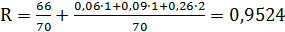 Вероятность αi основывается на оценке данных предшествующего периода функционирования однотипных программ, либо на основе аппаратной информации. Предположим, что при тестировании программного обеспечения из 70 прогонов 4 закончились с отказом.