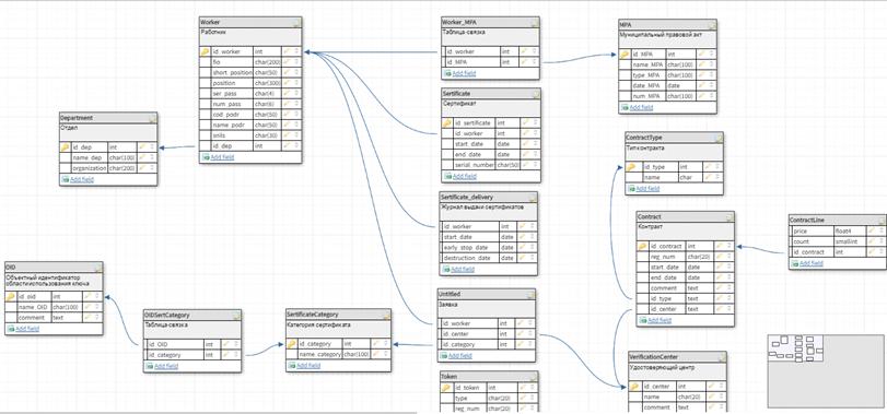 ContractLine - содержит информацию о стоимости конракта и количестве выданных сертификатов (таблица-справочник)
