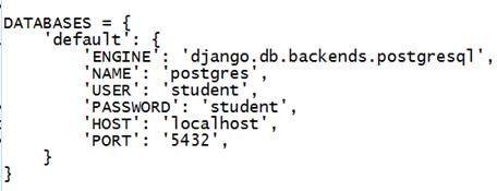 использоваться PostgreSQL, в Settings.py внесем настройки, представленные на рисунке 5.1