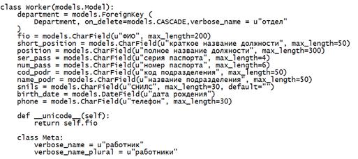verbose_name_plural = u"отделы"Worker(models.Model):