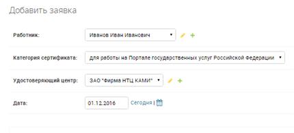 Application - заявка в удостоверяющий центр на выдачу сертификатов