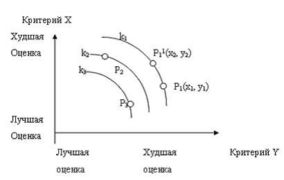 Рис. 2. Кривые безразличия для двух критериев оценки альтернатив