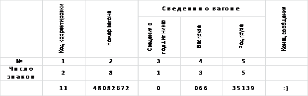 Седьмая - содержит сведения о наличии у вагона переходной площадки (0-8 - нет, 9 - есть).