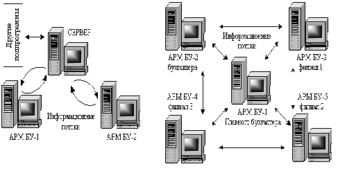 Рис. 1. Локальная и распределенная система Банков и Баз данных