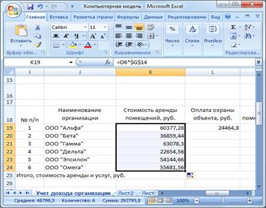 «Альфа» и столбца «Стоимость аренды помещений» делаем активной ячейку (в нашем