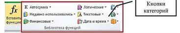 Рис. 4.13. Кнопки категорий функций в группе «Библиотека функций»