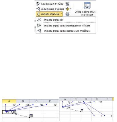 висимым ячейкам. Чтобы убрать следующий уровень стрелок трассировки, нажмите эту кнопку еще раз.