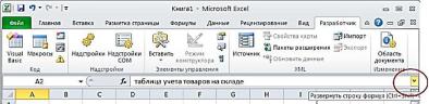 Для просмотра и редактирования содержимого выделенной ячейки можно увеличить высоту строки формул. Для этого щелкните по кнопке Развернуть строку формул (Рис. 1.9) или нажмите комбинацию клавиш [Ctrl] + [Shift] + [U]. Если и в этом случае отображается не все содержимое ячейки, можно воспользоваться полосой прокрутки.