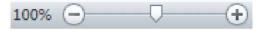 Изменить масштаб отображения листа можно при работе в любой вкладке Excel 2010. Для управления масштабом используется Область Масштаб строки состояния.