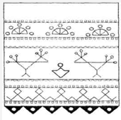 Свадебное полотенце-эта трехчастная симметричная композиция с изображением женской фигуры в центре и всадниками по бокам. Такое полотенце приносило в дом как пожелание продолжения рода и семейного благополучия (чтобы дети родились и росли здоровыми, не переводилась птица и домашние животные, всегда был обильным урожай на поле...). Вышивалось оно обычно невестой или её подружками, вешалось в переднем "красном" углу сразу же в первый день свадьбы.
