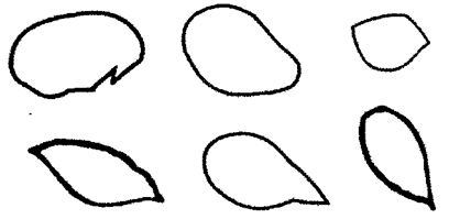 Учитель. Есть ли какие-то особенности, которые позволяют нам утверждать: "Это животное"? Лиза. У животного - четыре ноги... Олег. У них туловище больше всего... больше других частей... Учитель. А если посмотреть на рисунки? На изображения? Лида. А! У животных это... (делает движения руками, показывающими форму) такая форма... посмотришь, сразу понятно, что это животное... Лиза. Обобщенная форма... Она показывает, кто это... а еще и что делает и какое оно... доброе, злое... Учитель. Согласна с вами. Гриша. Они могут быть похожи на треугольники, на квадраты и другие фигуры. Учитель. Да. Обобщенные формы очень близки к геометрическим. Это очень важное добавление, и вы поймете сейчас, почему. Учитель показывает на интерактвной доске сначала шесть картинок с изображениями различных птиц, а потом столько же изображений обобщенных очертаний, передающих различные формы и пропорции основных частей их туловища.
