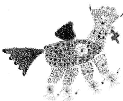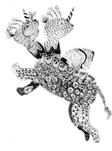 Лиза. Мы разные штриховки делали... Голову так.., туловище - по-другому... Чем красивее штриховка, тем животное более фантастическое получается...